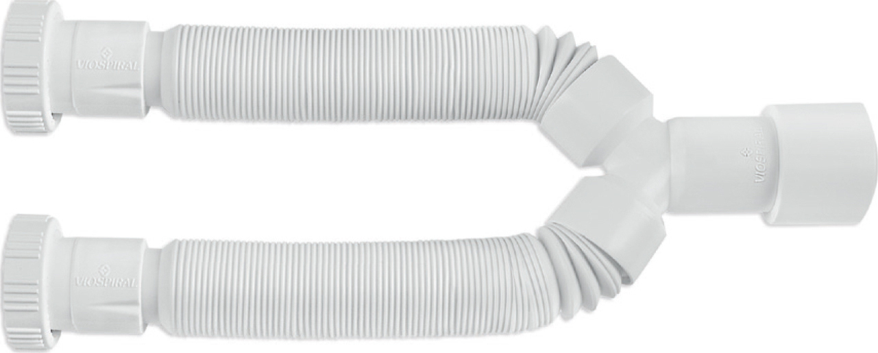 Σιφώνι νεροχύτη διπλό εύκαμπτο-σπιράλ 1 1/2″xΦ40/50 κατάλληλο για όλους τους τύπους νεροχύτες κουζίνας με πλαστικό παξιμάδι ABS βαρέως τύπου 1 1/2″ υψηλής αντοχής, θερμοκρασία διέλευσης υγρών στους 60ºC.