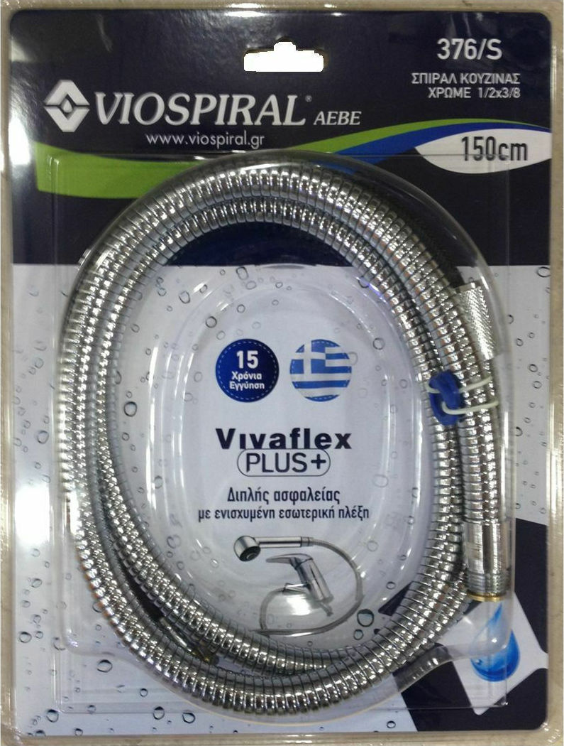 Σπιράλ, μεταλλικό, βαρέως τύπου με διάμετρο 150cm, με κωνικό παξιμάδι 1/2″Χ 3/8”, από την εταιρεία Viospiral. Viospiral Σπιράλ Κουζίνας 150cm 1/2″x3/8″ Ορειχάλκινο Βαρέως Τύπου Xρωμέ 00-376/S