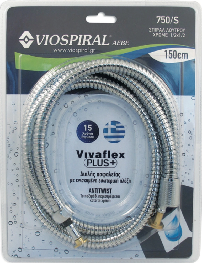 Viospiral Σπιράλ Ντους Μπάνιου-Λουτρού 150cm Ορειχάλκινο Βαρέως Τύπου Xρωμέ Vivaflex Plus 00-750/S