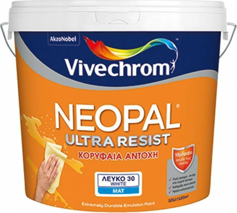 To NEOPAL ULTRA RESIST είναι πλαστικό χρώμα κορυφαίας αντοχής, για εσωτερική χρήση. Αυτό το πολύ σκληρό και εξαιρετικά πλενόμενο χρώμα (Class 1, EN 13300), δημιουργεί μία υδρόφοβη μεμβράνη που μετατρέπει τους κοινούς υδατοδιαλυτούς λεκέδες όπως αναψυκτικά, καφές, κρασί, λάσπη κλπ σε σταγόνες οι οποίες ρέουν στην επιφάνεια του χρώματος χωρίς να διεισδύουν σε βάθος. Έτσι μπορεί να καθαριστεί πολύ πιο εύκολα απ’ ότι ένα κοινό πλαστικό χρώμα και οι τοίχοι παραμένουν σαν καινούργιοι για καιρό. Έχει πολύ υψηλή καλυπτικότητα και απόδοση, θαυμάσιο άπλωμα και στεγνώνει γρήγορα. Προσφέρει ένα καλαίσθητο ματ φινίρισμα.