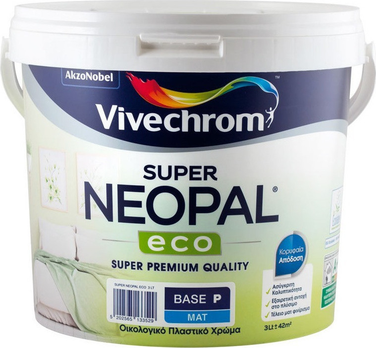 Vivechrom Super Neopal Eco Πλαστικό Χρώμα Οικολογικό για Εσωτερική Χρήση Λευκό 3lt
