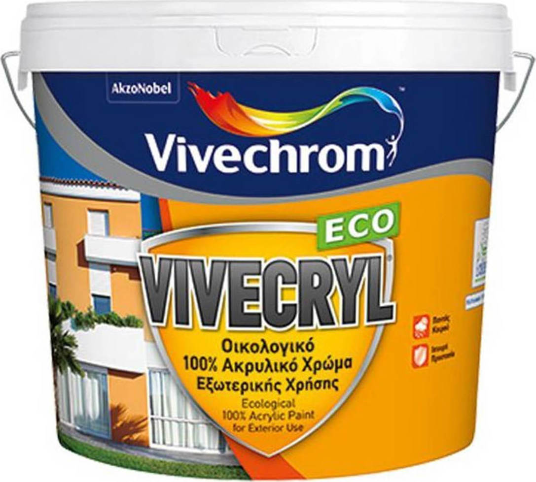 Vivechrom Vivecryl Eco Πλαστικό Χρώμα Ακρυλικό Οικολογικό για Εξωτερική Χρήση Λευκό 3lt