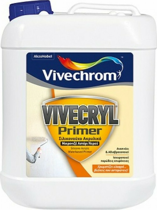 To Vivecryl Primer της Vivechrom είναι σιλικονούχο ακρυλικό μικρονιζέ αστάρι νερού για εξωτερικούς τοίχους και ταράτσες. Αδιαβροχοποιεί την επιφάνεια & έχει παράλληλα υψηλή διαπνοή. Συμβάλλει σημαντικά στον περιορισμό της μετανάστευσης αλάτων από τον τοίχο στην επιφάνεια του τελικού χρώματος, ενώ ταυτόχρονα περιορίζει το φαινόμενο της ανερχόμενης υγρασίας από το έδαφος. Έχει ισχυρή πρόσφυση, μεγάλη διεισδυτικότητα και αντοχές σε αλκαλικά υποστρώματα. Είναι ελαφρώς χρωματισμένο κίτρινο με αποτέλεσμα να φαίνεται εύκολα και γρήγορα εάν οι επιφάνειες έχουν ασταρωθεί πλήρως. Είναι άοσμο, φιλικό για το χρήστη και το περιβάλλον. Vivechrom Vivecryl Primer Σιλικονούχο Ακρυλικό Μικρονιζέ Αστάρι Νερού Κατάλληλο για Τοιχοποιία 1lt